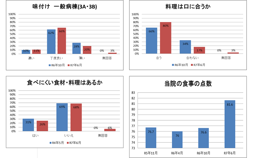 入院患者さんの食事満足度向上を目的とし、定期的に嗜好調査(入院食アンケート)を行っています。