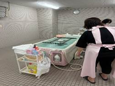 看護師と看護助手が協働して入浴介助をおこなっています。