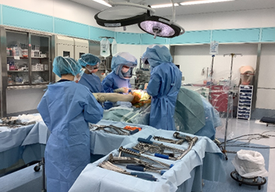 消化器外科ではヘルニアや胆のう炎などの手術、整形外科では変形性膝関節症、大腿骨骨折などの手術の他、ばね指や軟部腫瘍などの外来手術を行っています。形成外科では、腫瘍摘出や陥入爪などの外来手術を行っています。手術室は2部屋あり、スタッフは看護師7名、看護助手1名で担当しております。チームワークが良く明るい職場です。